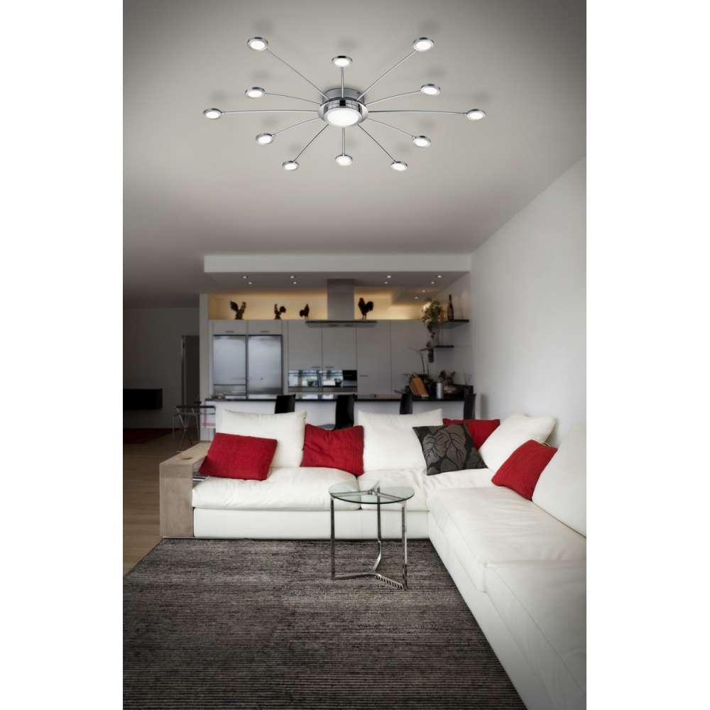 Bodrum. Pilot w zestawie. Płynna zmiana barwy światła. Wbudowany ściemniacz. Kolor chrom/biały. Nie współpracuje z zewnętrznym ściemniaczem.