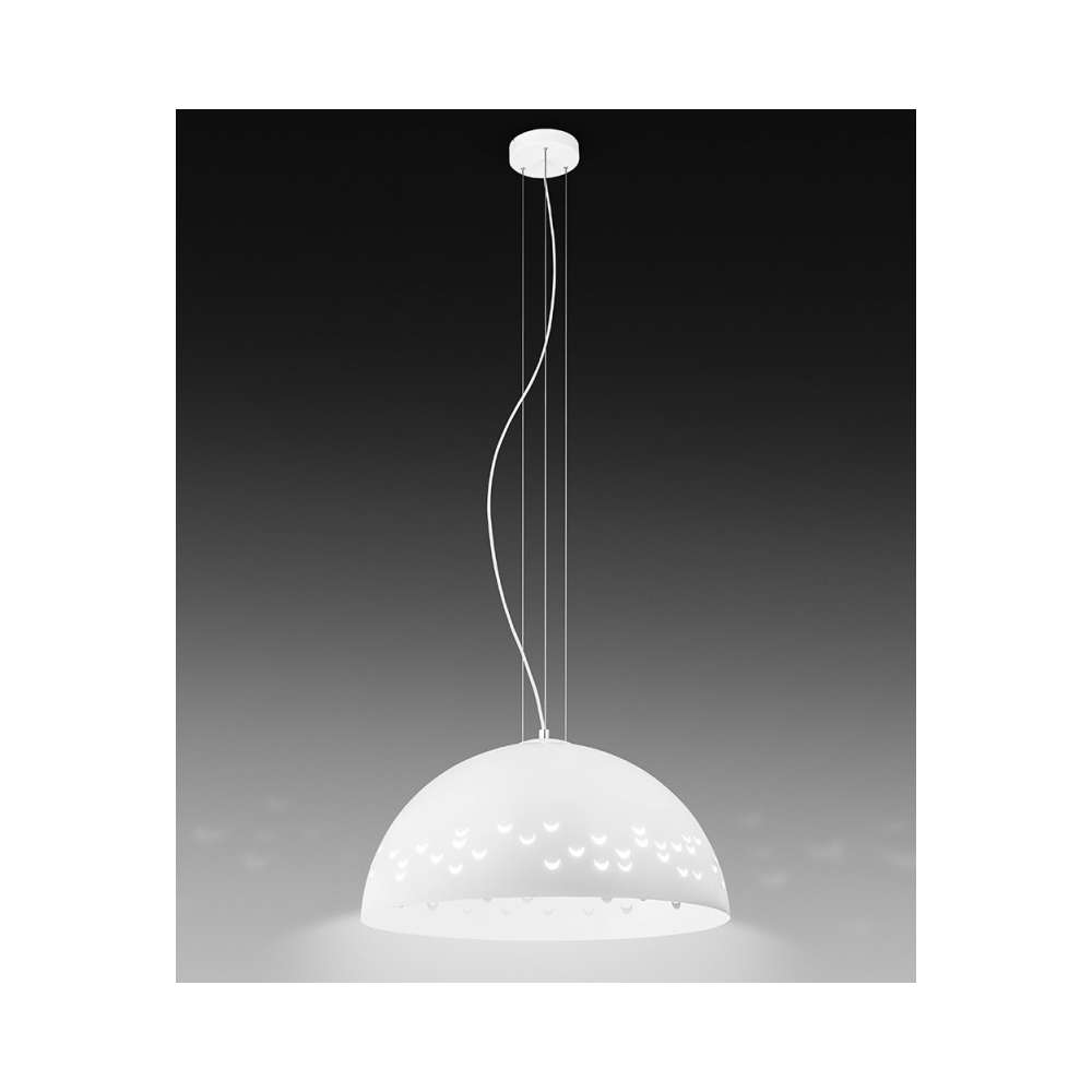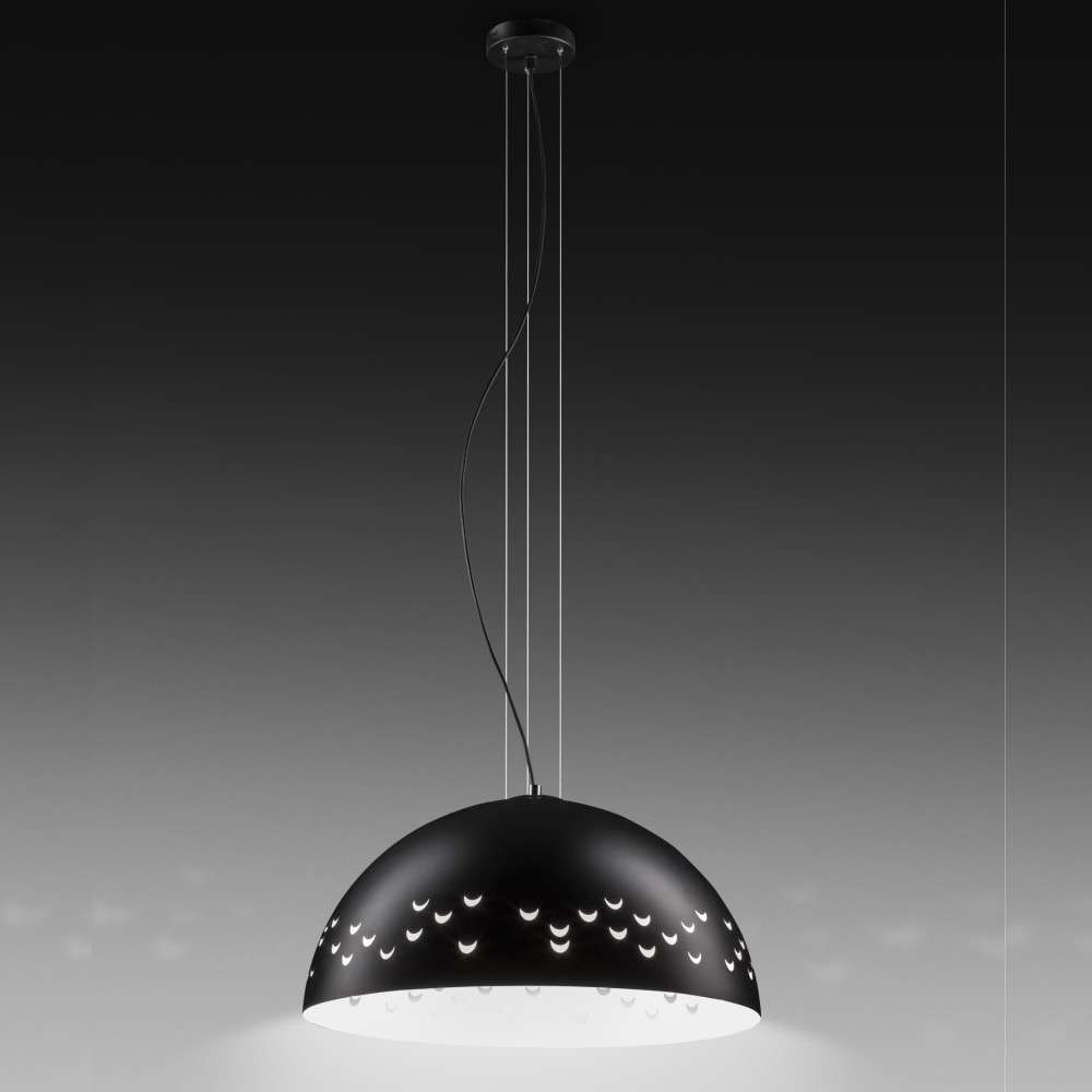 Blum to żyrandol o klasycznej formie. Metalowy klosz o kształcie półkuli wyróżnia się dopracowaniem detali. Wzór wycięty w dolnej części czaszy przypomina łuskę. Jest dyskretny i nienarzucający się ale jednocześnie wystarczająco charakterystyczny. Od dołu klosz ze swoimi trzema źródłami światła został zamknięty matowym szkłem. Pozwoliło to na uzyskanie dużej ilości przyjemnie rozproszonego światła oraz pozytywnie wpłynęło na spójność kompozycyjną żyrandola. Wysokość lampy można łatwo regulować poprzez system linek. Dzięki temu adaptacja do wnętrza i poziomowanie przebiega bezproblemowo a żyrandol zawsze wygląda jakby był na właściwym miejscu. Blum doskonale sprawdzi się w wielu zastosowaniach, ale jego naturalna rola to oświetlanie stołów w kuchniach i jadalniach.