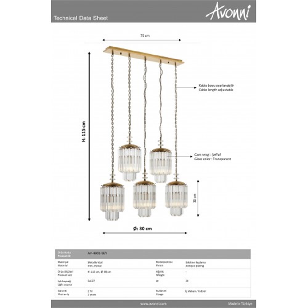 Lampa wisząca Avonni AV-4302-5EY