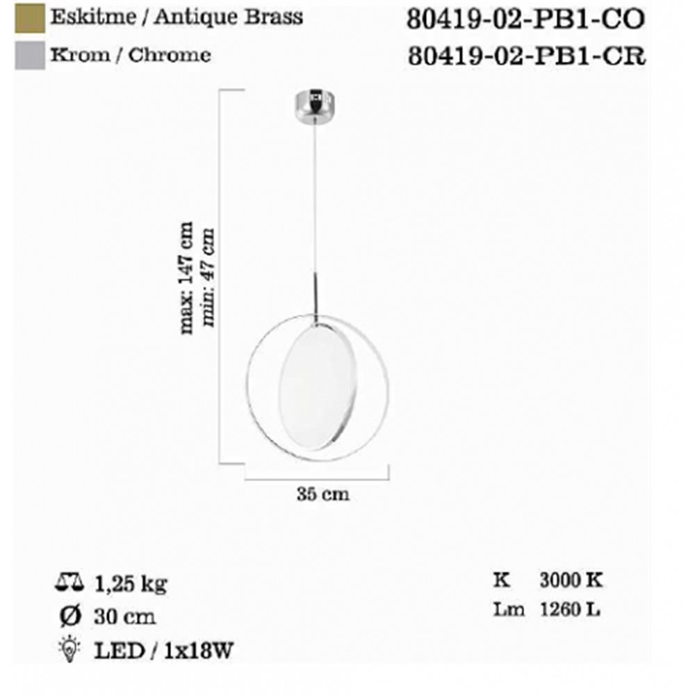 Lampa wisząca Lucea Molveno 80419-02-PB1-CR