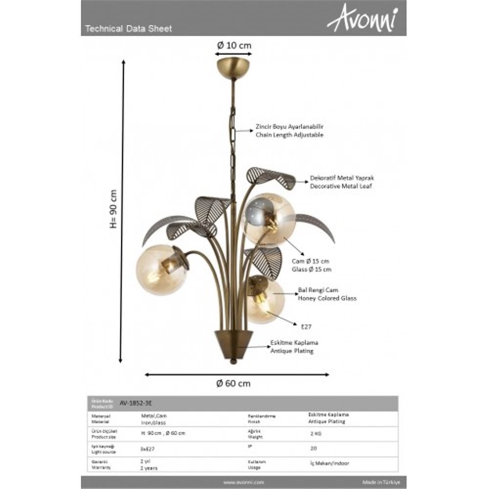 Lampa wisząca Avonni AV-1852-3E