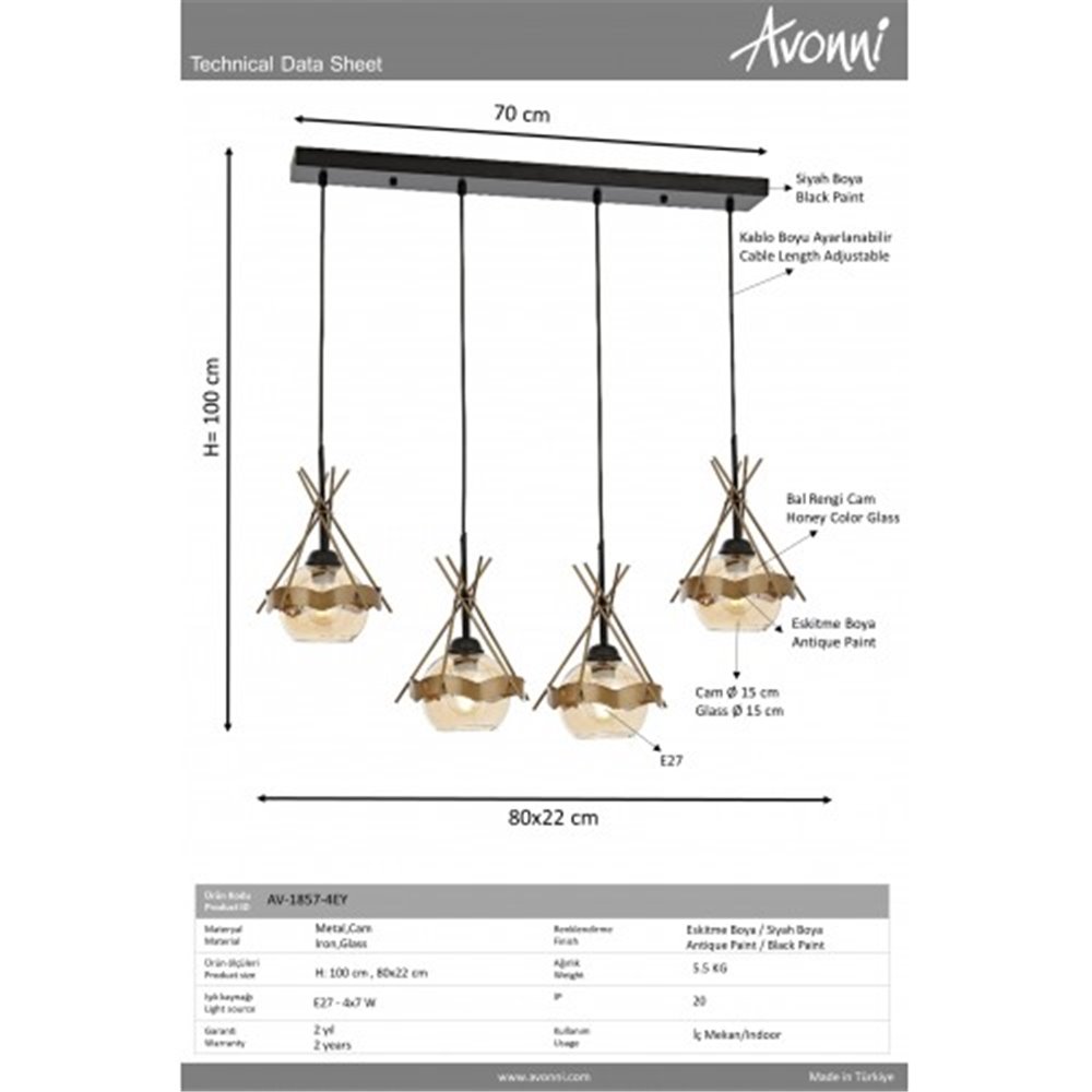 Lampa wisząca Avonni AV-1857-4EY