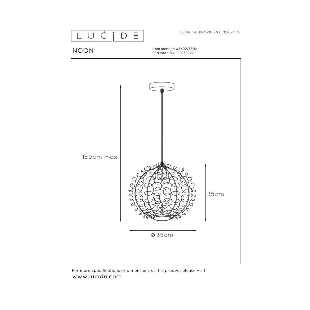 Lampa wisząca Lucide Noon 08402/35/12