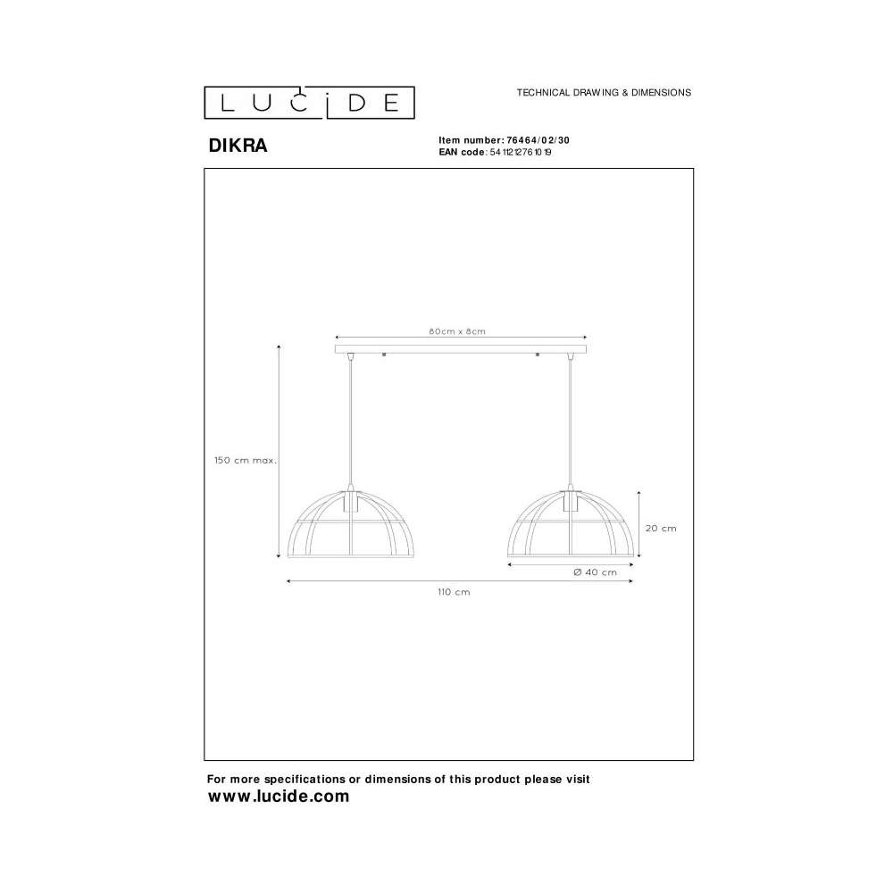 Lampa wisząca Lucide Dikra 76464/02/30