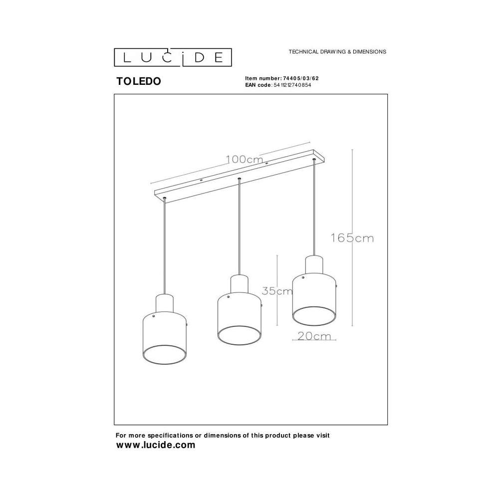 Lampa wisząca Lucide Toledo 74405/03/62