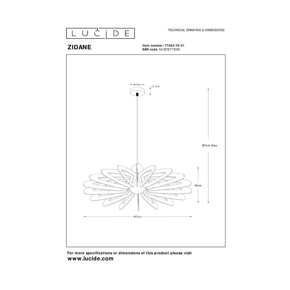 Lampa wisząca Lucide Zidane 77483/76/31