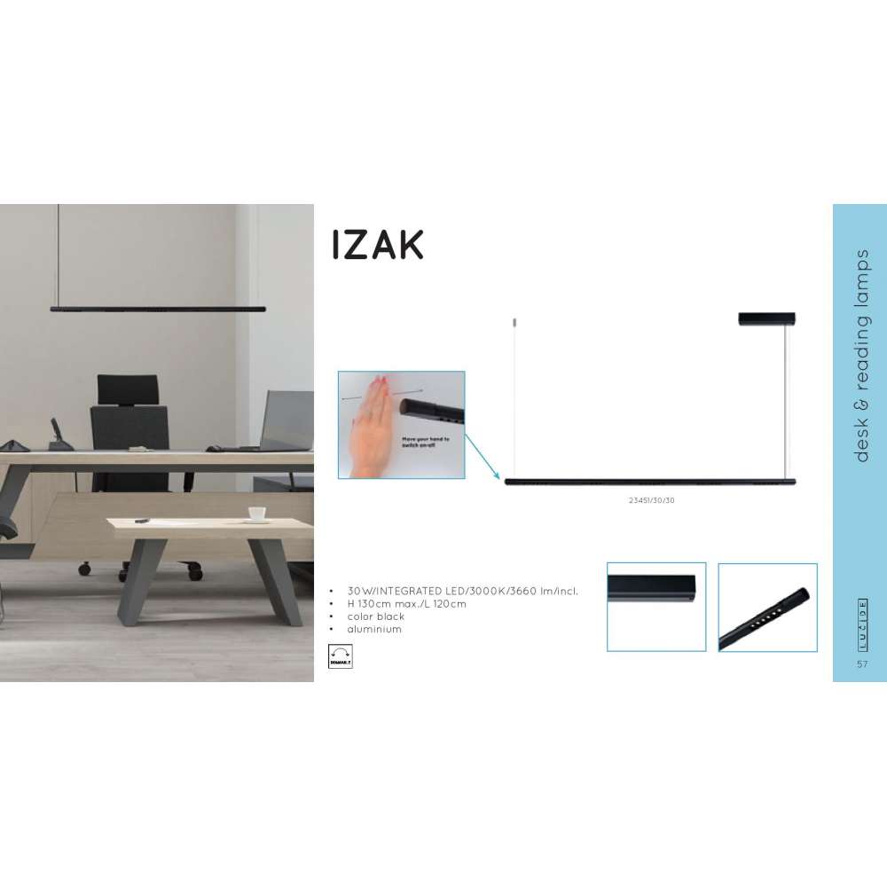Izak. Kolor czarny, LED zintegrowany ściemnialny Regulowana wysokość (przed montażem).