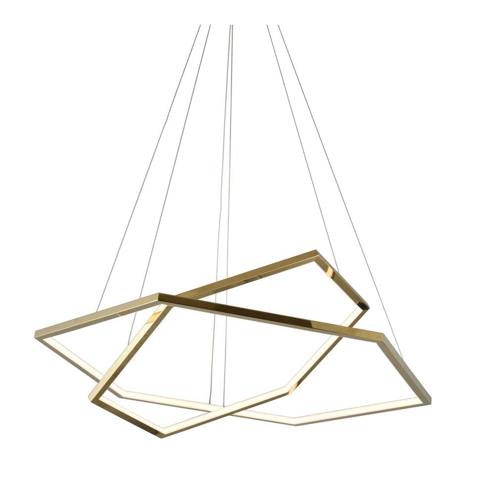 Elegancki żyrandol w formie podwójnego sześciokątnego pierścienia to propozycja dla wnętrz, w których liczy się zarówno design, jak i funkcjonalność. Złoty platerowany kolor nadaje mu luksusowy charakter, a geometryczna forma przyciąga wzrok, tworząc nowoczesny element dekoracyjny w salonie, jadalni czy reprezentacyjnych przestrzeniach komercyjnych.