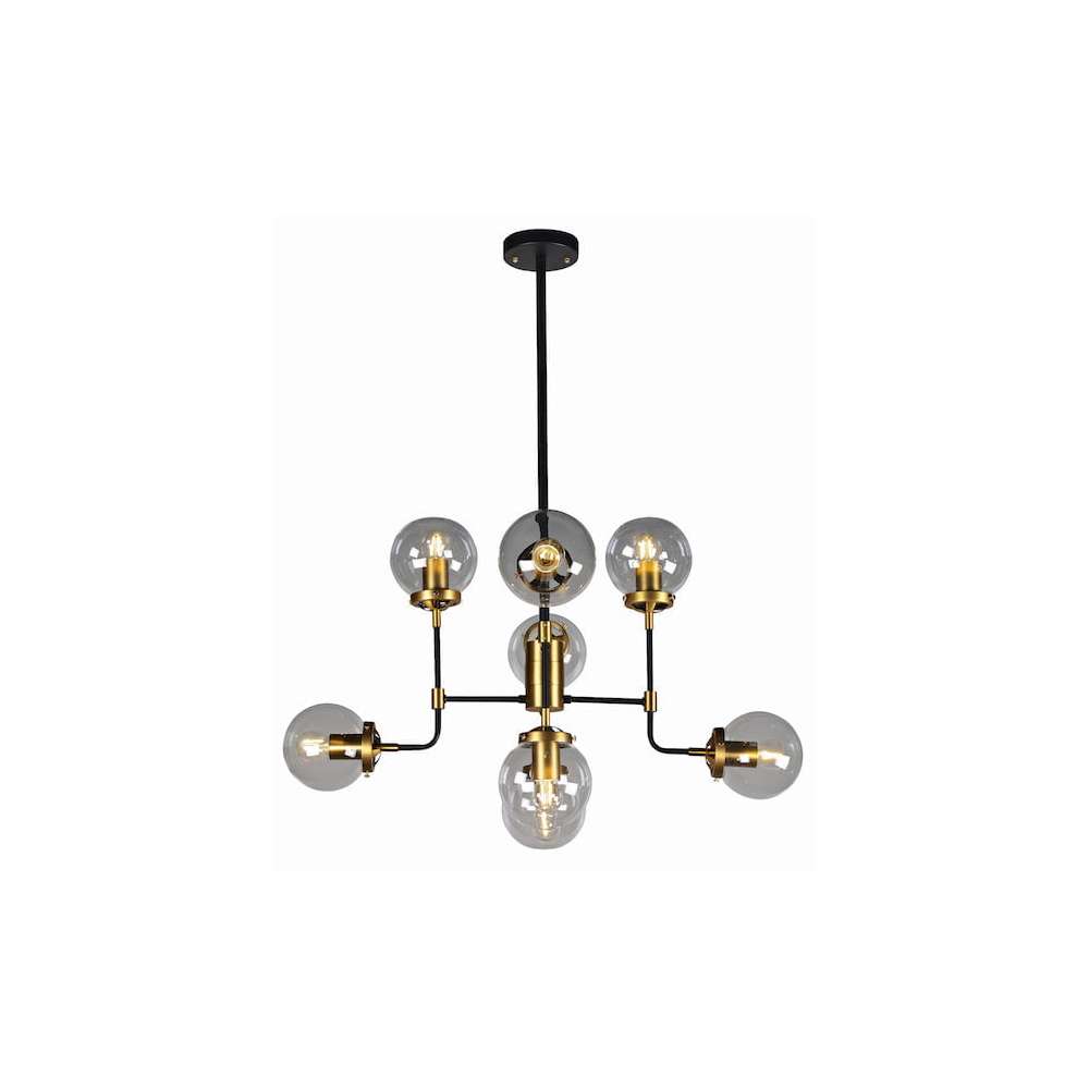 Wysoka modernistyczne żyrandol czarny matowy metalowe okucia ramiona wykonane z mosiądzu i mocowania obiektywu w złotym kolorze i formę szklaną pokrywą unikalny ciała do nowoczesnego wnętrza, w tym stylu glam Zastosowanie: nowoczesny styl, przepych Type: Żyrandol Średnica: 78 cm Wysokość: 94 cm średnica soczewki: materiał 13c mm: metal, szkło źródło światła: 8 x max 40W żarówka E14 dostarczany w części do montażu