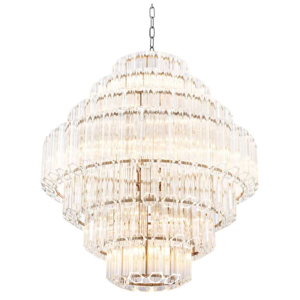 Żyrandole kryształowe nowoczesne to kolekcja w nowoczesnych kształtach, sensacyjne kryształowych żyrandoli, ale zachowując elegancję transmisję przez metalowym wykończeniem i najwyższą ocenę jakości kryształu K9 Crystal Series Casablanca Tubes obejmuje żyrandole w dwóch rozmiarach i uchwytem ściennym. Elementy metalowe w chromie i opcje na kolor złota galwanicznie serii poświęcony luksusu, reprezentatywne lokale zarówno w układzie klasycznym i nowoczesnym. Casablanca kryształ Rury 66 świecznik średniej wielkości, pięć rzędów pierścieni, w których elementy są przymocowane materiałów: metal, szkło kryształowe Kolor metalicznego złota Plater (z połyskiem) przeszklona wymiary: średnica 660 mm, wysokość 670 mm, zawiesinę (łańcuch) max 1300 mm (może być skrócony) wysokość całkowita: 1700 mm max min. około 800 mm Źródło światła: 12 x E14 żarówki (żarówki nie są uwzględniane)