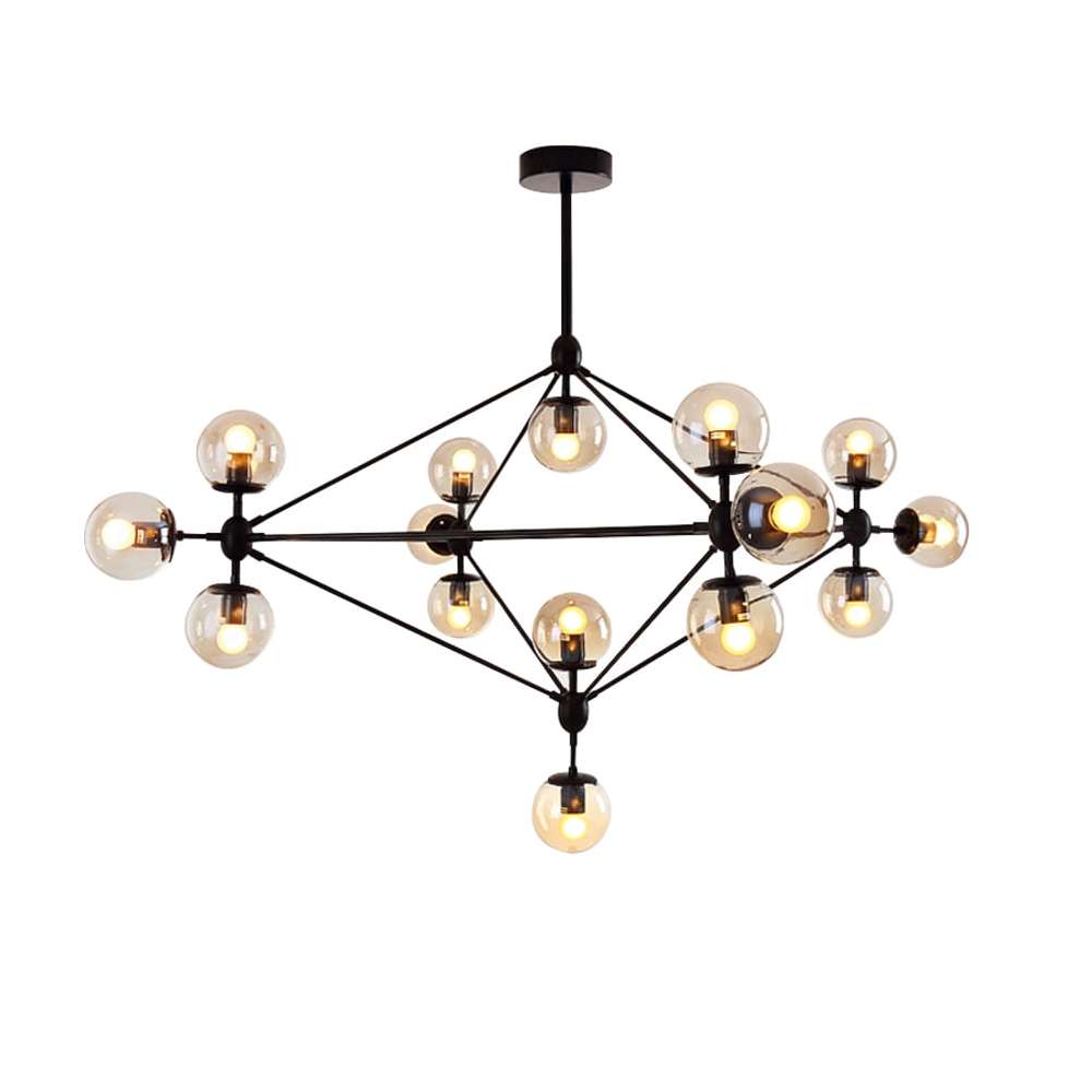 Piramidy 15 duży świecznik nowoczesny 15 punkt w kształcie dwóch piramid połączone kwadratowy lampy bazowej dostarczonymi w części do montażu Typ: baza Żyrandol 130 x 130 cm, wysokość: 78 cm + sufitu soczewek 15 x soczewki o średnicy 13c mm Materiał: metal szkło Kolor: czarne szkło przezroczyste, bursztyn Źródło światła: 15 x E27 żarówka wysłane w częściach do marki