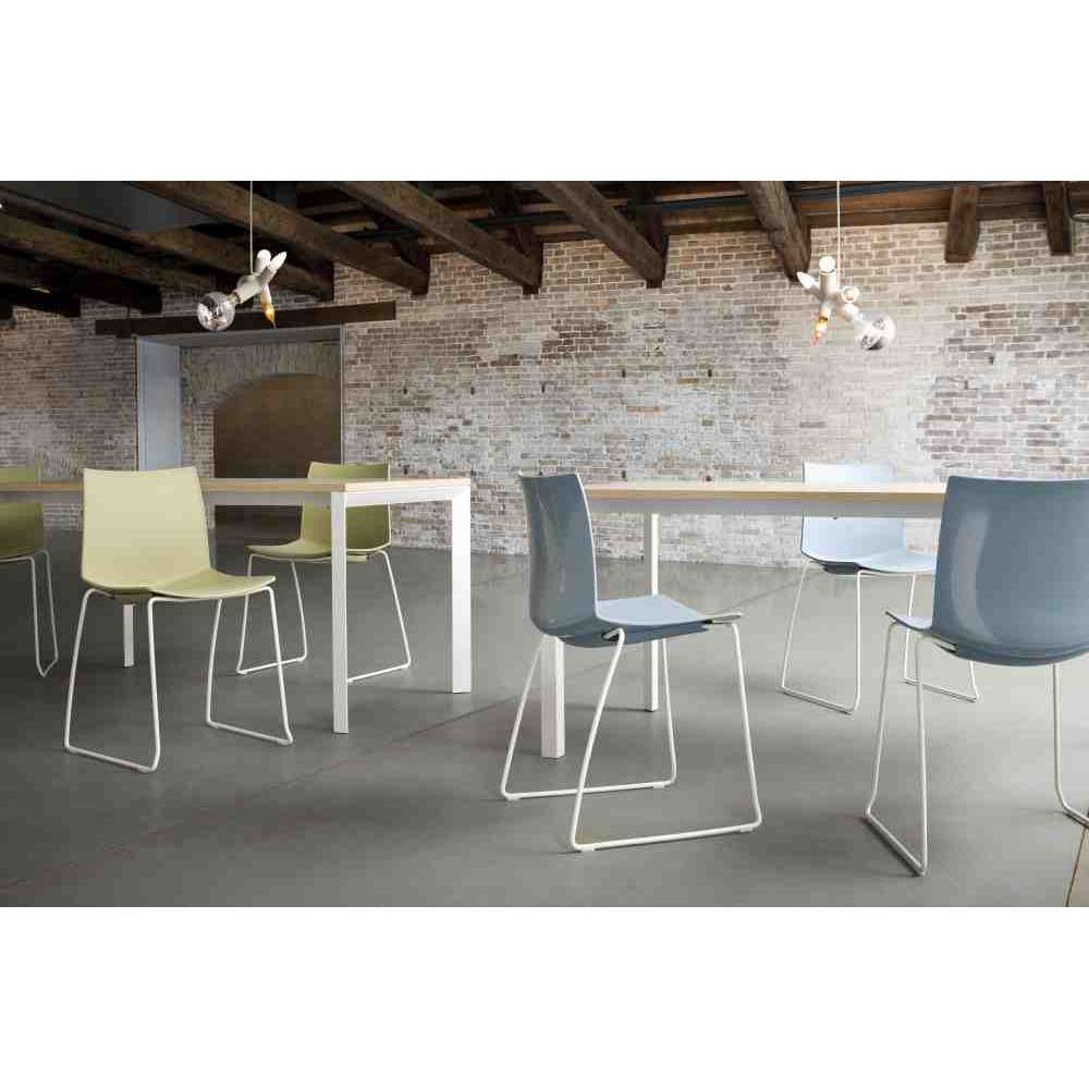 Kanvas to współczesna, lekka kolekcja krzeseł i stołków sztaplowanych.