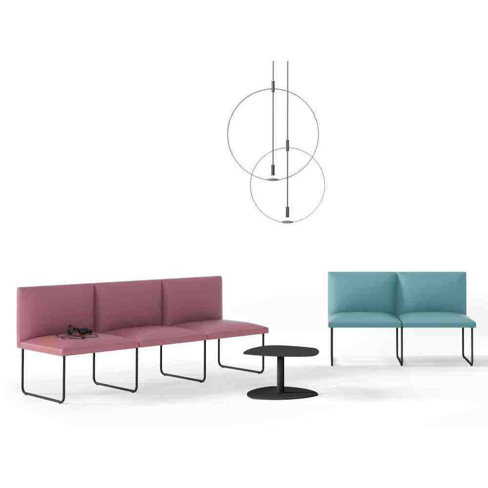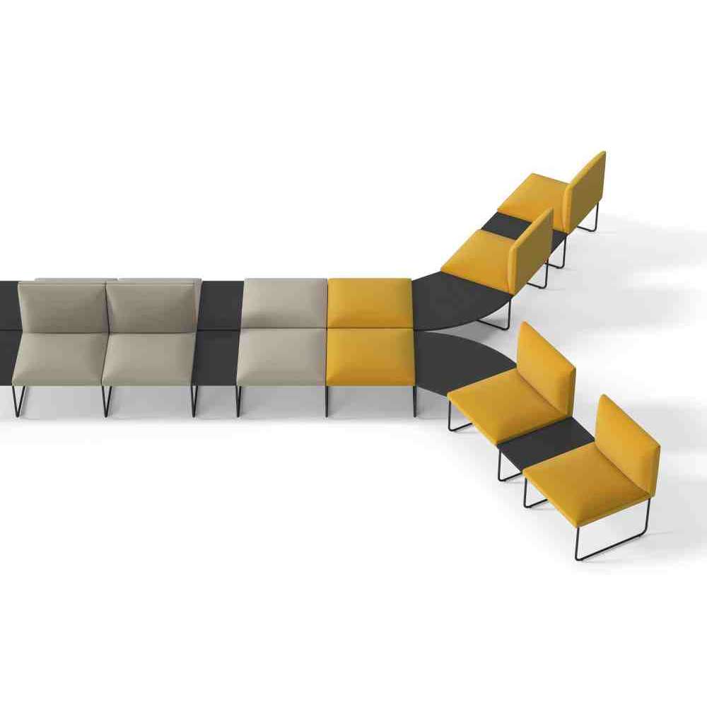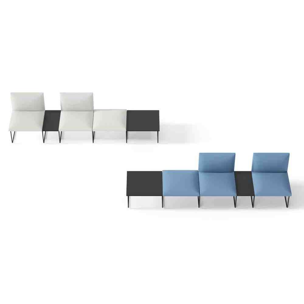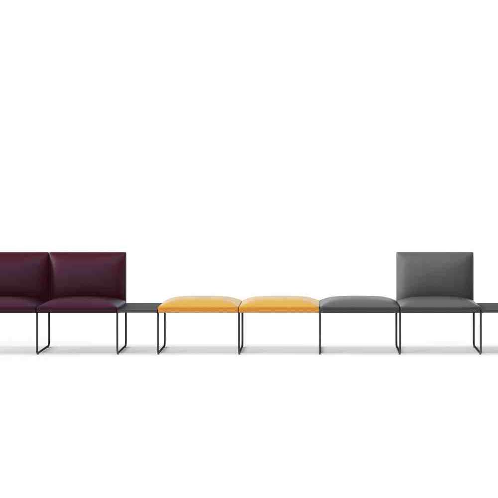 Modułowa tapicerowana ławka do salonów i przestrzeni publicznych, z oparciem lub bez.