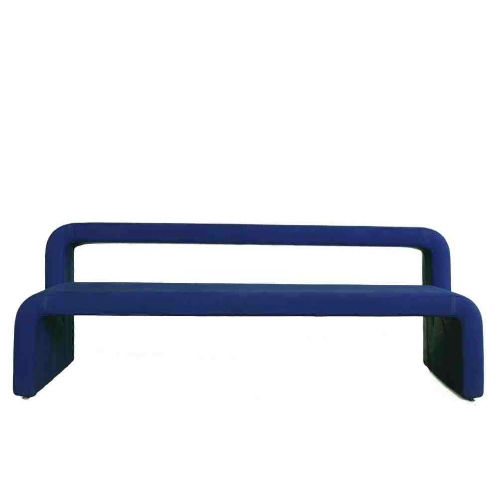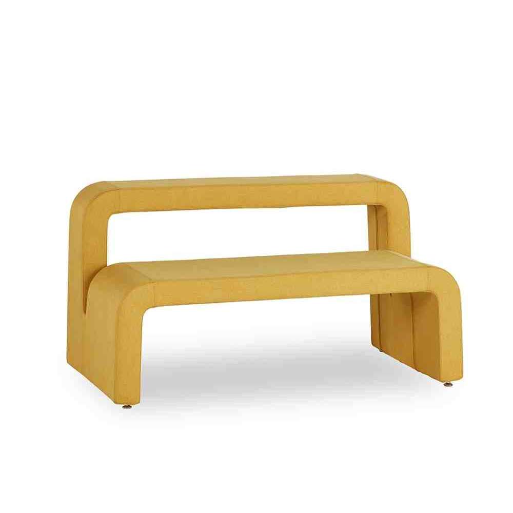 Dwie ławki Moby z wyższymi sekcjami można wykorzystać tyłem do siebie, tworząc sekcję prawie jak stół piknikowy, idealny na krótkie spotkania. Umieszczając różne pufy wokół tego obszaru, możesz stworzyć miejsce spotkań o różnych porach dnia. Cały katalog tkanin i winyli B&T Design jest odpowiedni dla ławek Moby.