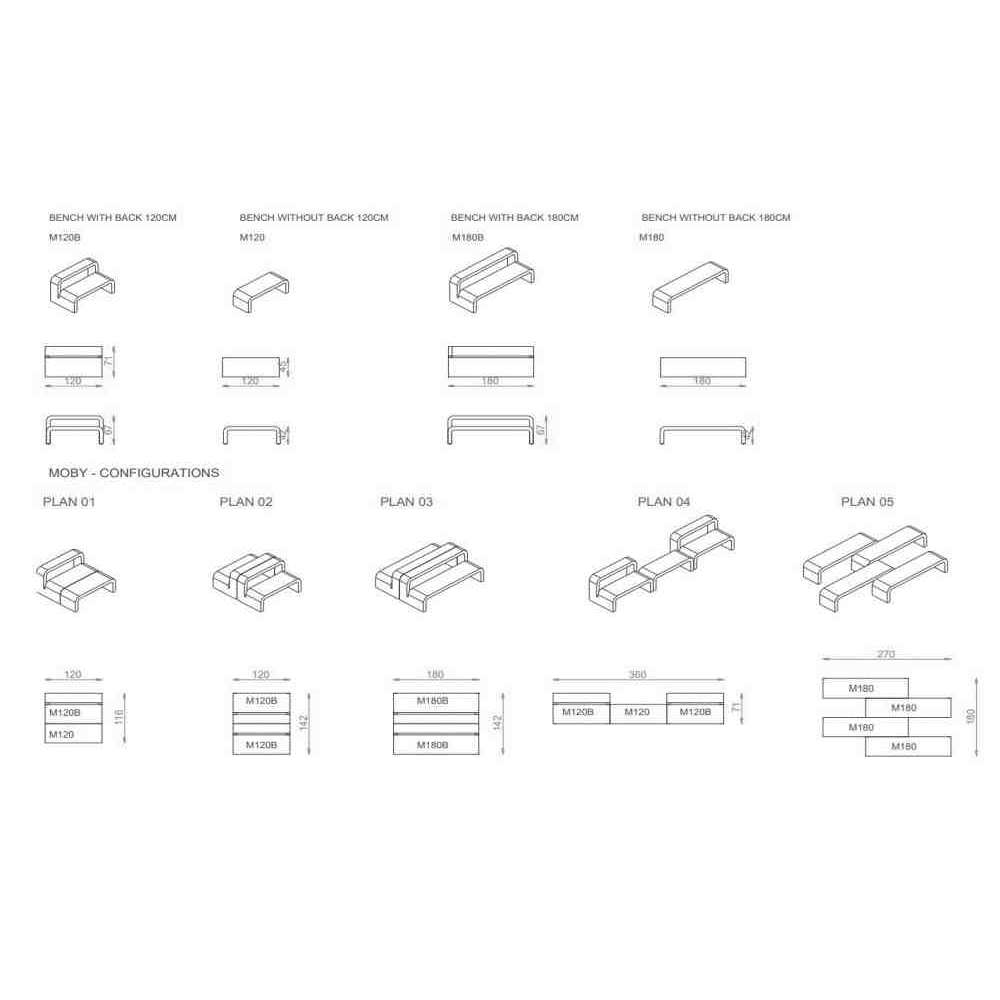 Moby Ławki o minimalistycznej, eleganckiej formie wtapiają się w każdy styl. Te ławki są dostępne w dwóch różnych wzorach; prosta konstrukcja ławki lub ta sama ławka o wyższym przekroju. W obu wersjach projektowych dostępne są dwa różne rozmiary.