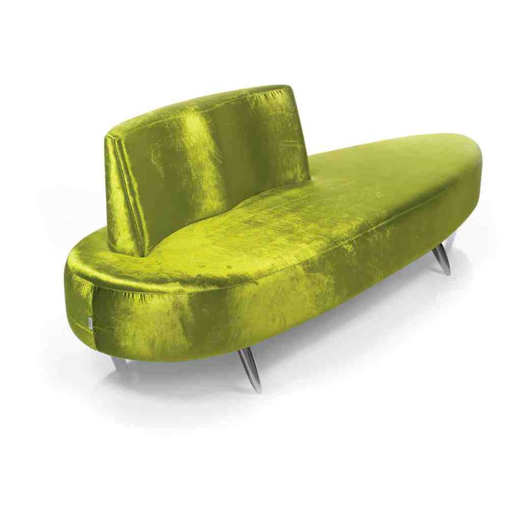 Sofa do siedzenia o konstrukcji drewnianej tapicerowana i pokryta winylem lub mikrofibrą. Stopki z polerowanego aluminium. Wyprodukowane we Włoszech.