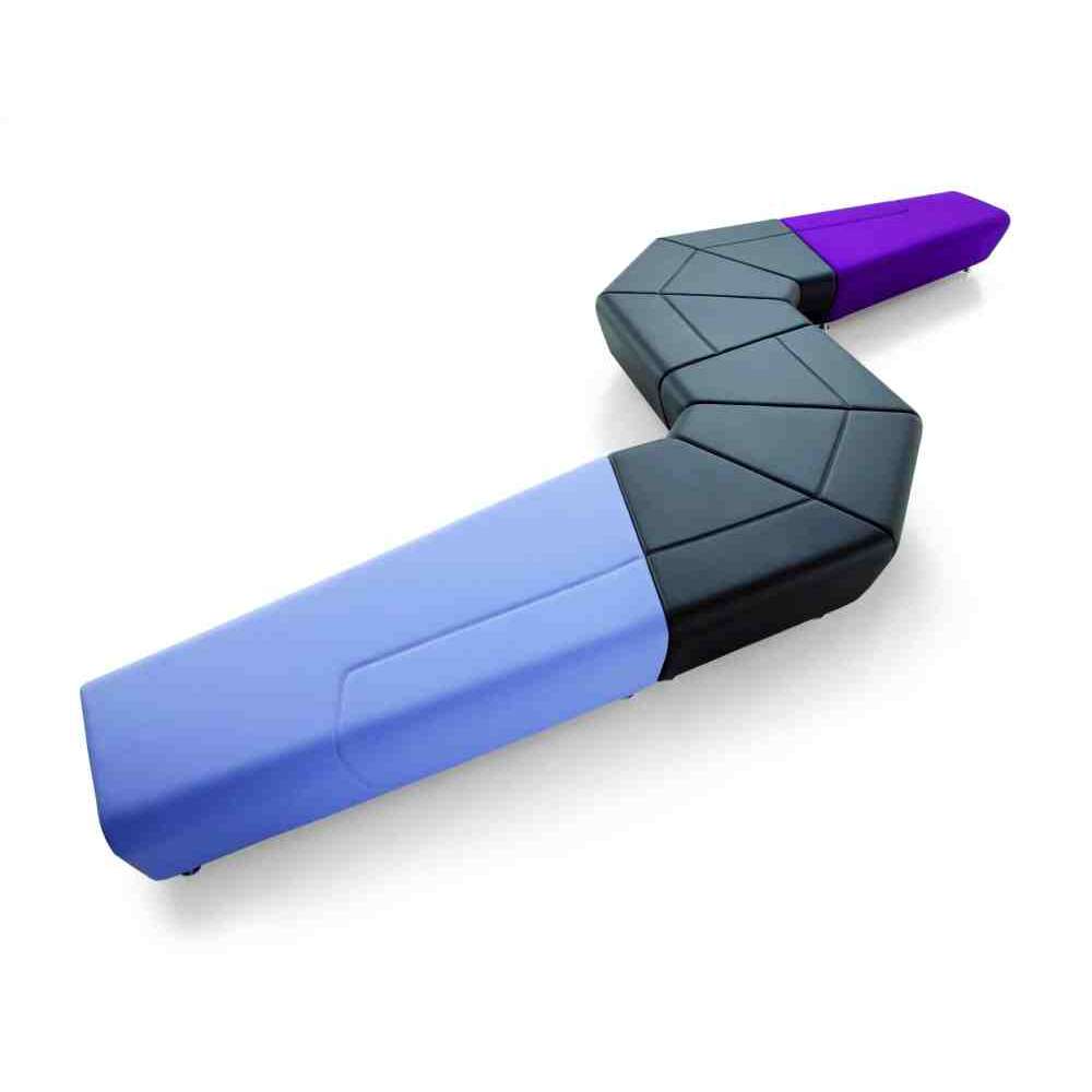 Modułowa gama do poczekalni, rozmów i miejsc spotkań wykonana z różnych wymiennych jednostek do rozwiązań narożnych lub liniowych w wersji jednokolorowej lub dwukolorowej tapicerki