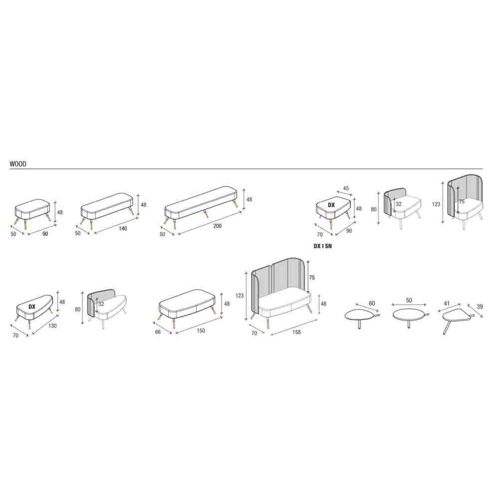 Duża rodzina siedzisk, biurek, stolików i parawanów, do stref przerw, nieformalnych miejsc, w których ludzie mogą swobodnie pracować w zespole, salach wykładowych, muzeach itp. Każdy element został pomyślany tak, aby był trwały, do zatłoczonych miejsc. Rama nośna każdego elementu jest metalowa (okrągły profil stalowy Ø 35 x 2,5 mm) sugerowana w kilku wykończeniach.