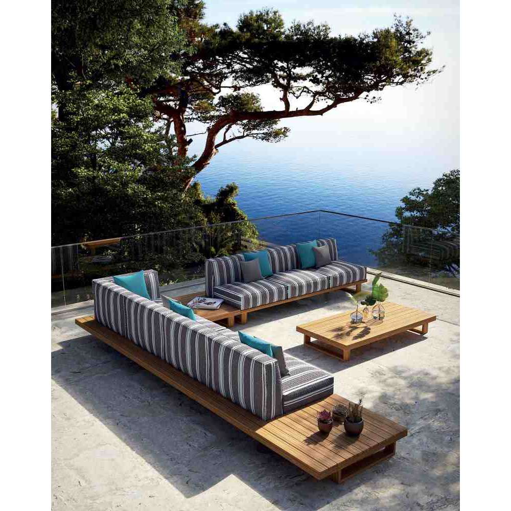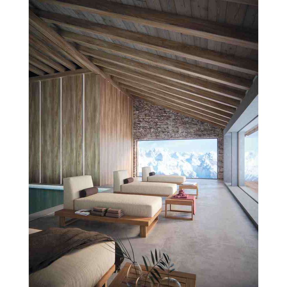 Leżak z drewna tekowego i tkaniny Atmosphera 9.Zero RIGHT CHAISE LONGUE