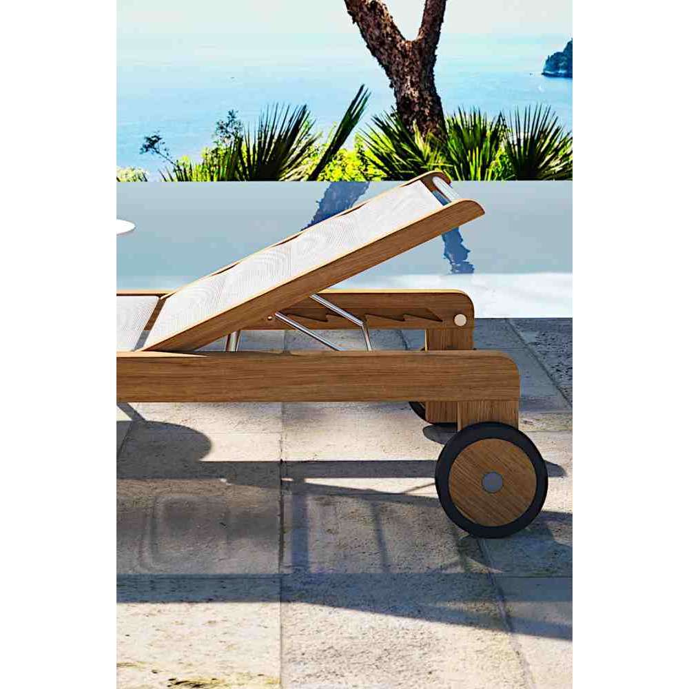 To sprzymierzeniec relaksu i serdeczności, jak sama nazwa wskazuje. Dakota w szezlongu z drewna tekowego o czystym i minimalistycznym designie, o strukturze drewna tekowego, siedzisko z tkaniny fabricne dostępnej w dwóch różnych kolorach. Detale ze stali 304.