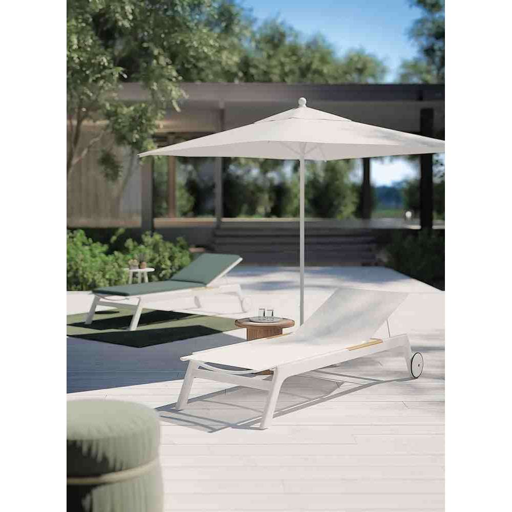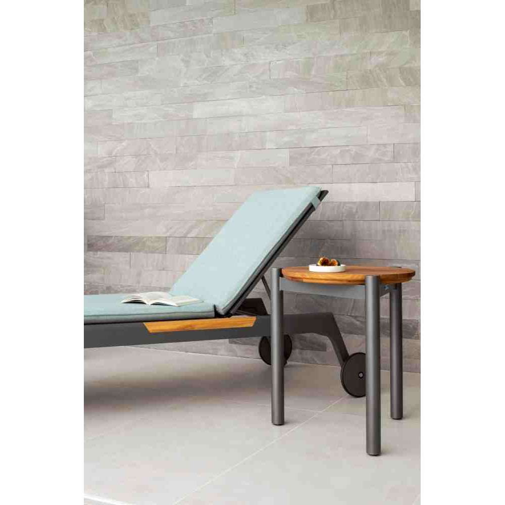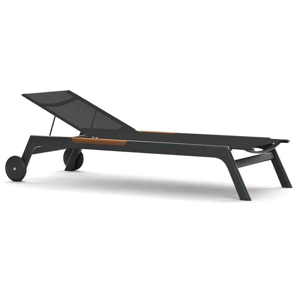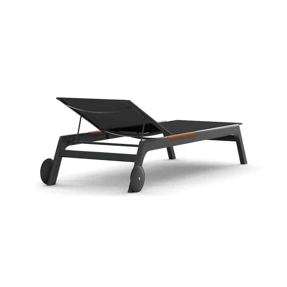 Czysty, czysty i ponadczasowy. Nevada leżak w kolorze grafitowym lub białym aluminium z wstawkami z drewna tekowego jest idealny do przestrzeni zewnętrznych i można go dostosować do każdego kontekstu, od mieszkalnego po hotelarski.