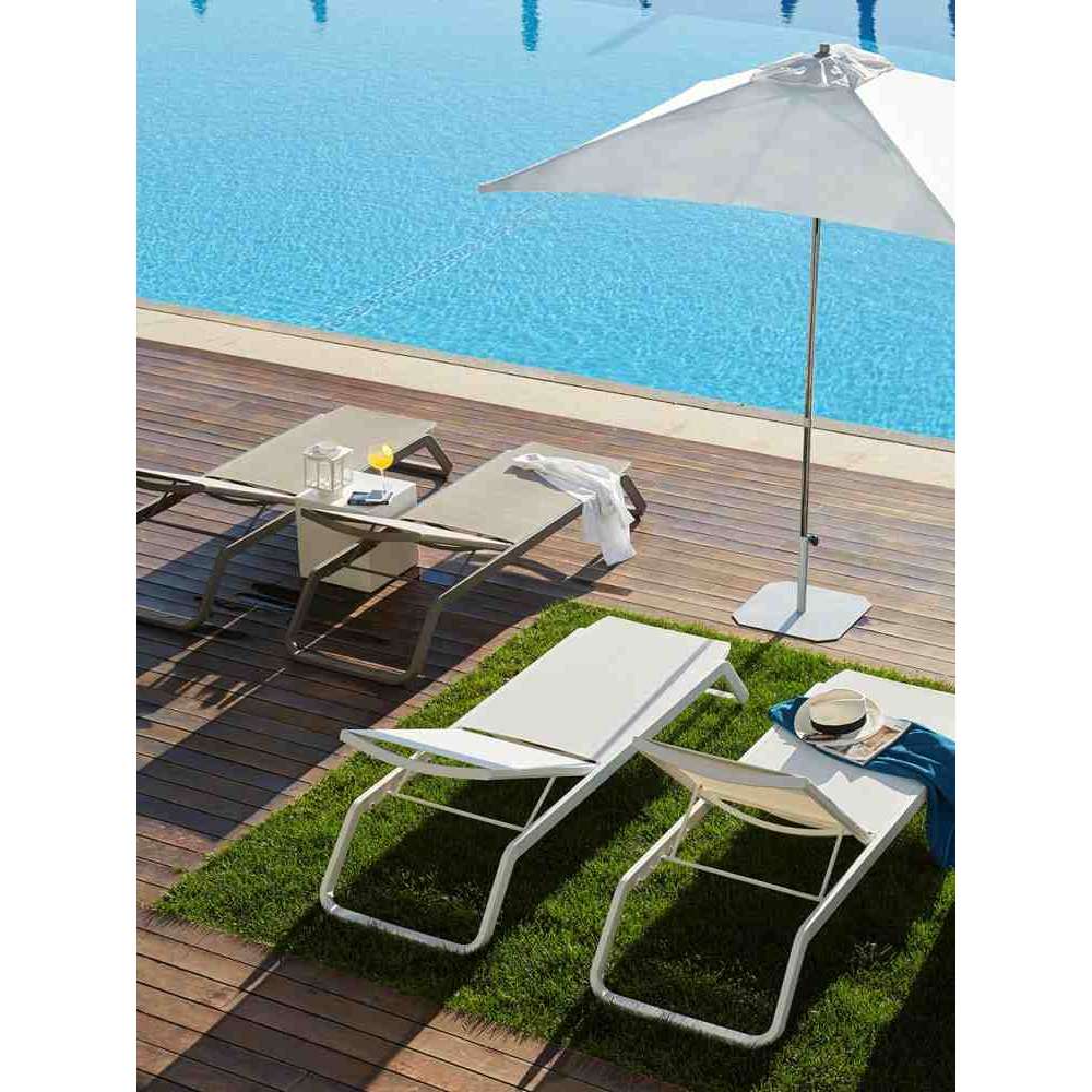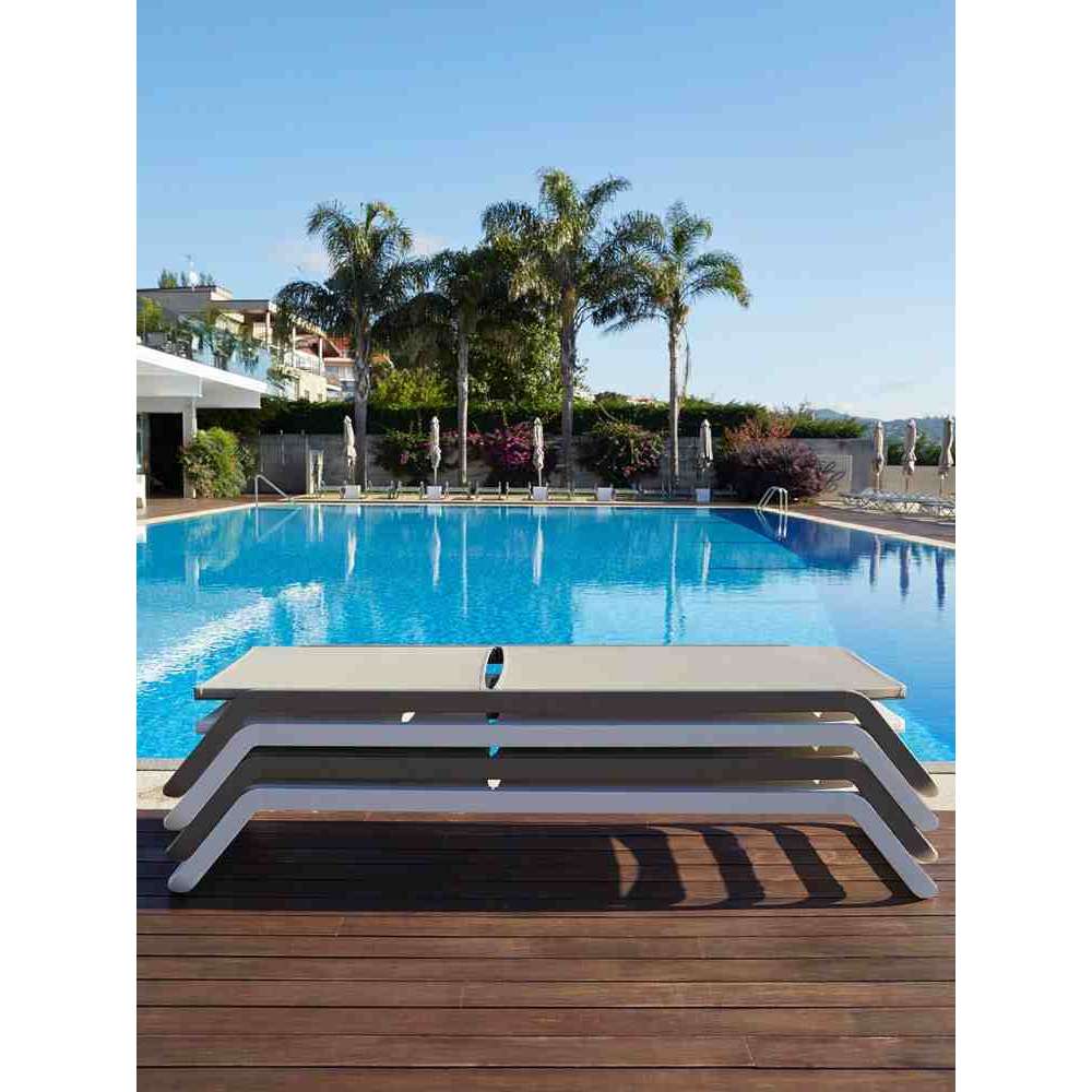 Vila to leżak o konstrukcji z lakierowanego aluminium, który można ustawiać jeden na drugim.