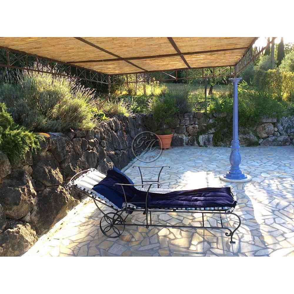 GH LAZZERINI, Meble ogrodowe, Leżaki, leżak, Metalowe leżaki, Leżaki z kutego żelaza, Żelazne leżaki, Leżaki na kółkach, Leżaki rozkładane, Lettino prendisole in ferro battuto con ruote, Lettino prendisole in ferro battuto, Lettino prendisole artystyczne spersonalizowane