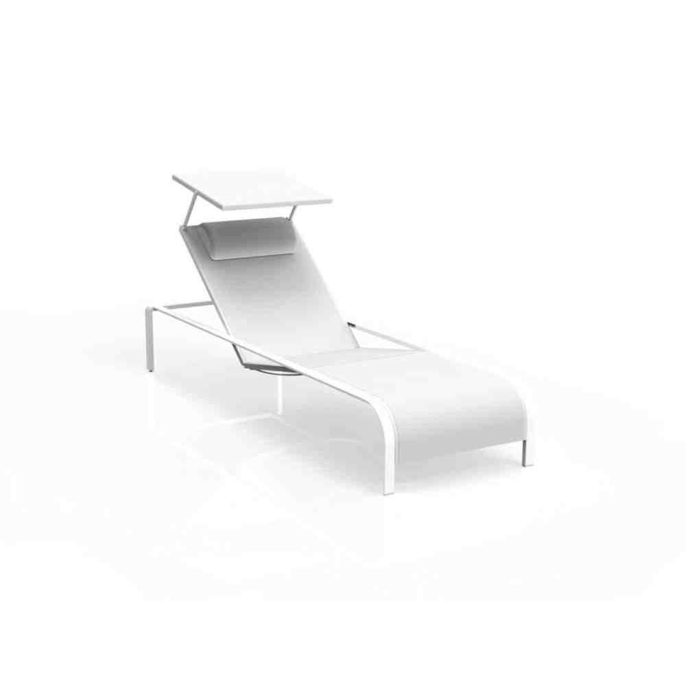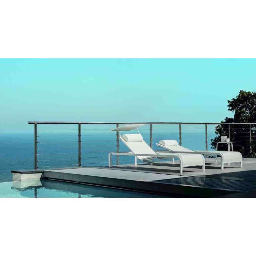 Leżak sztaplowany, rozkładany za pomocą systemu przesuwnego siedziska i oparcia. Opcjonalny parasol.