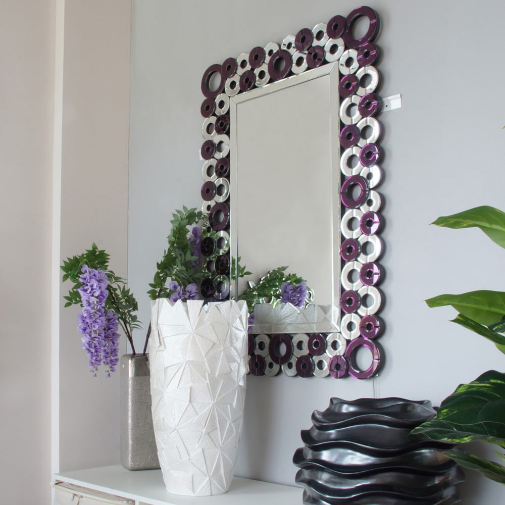 Lustro prostokątne z dekoracyjnymi fioletowymi kółeczkami 80/120 cm Alice