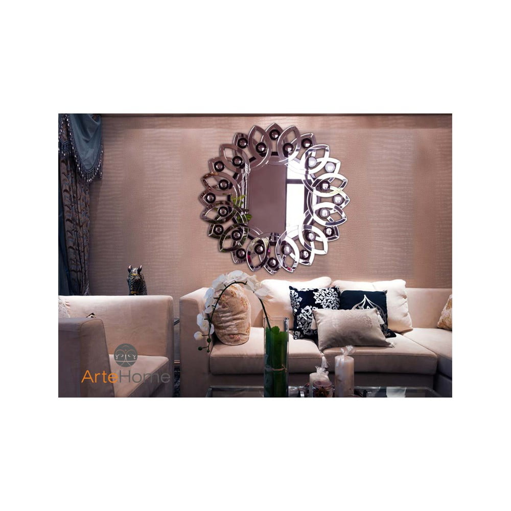 Kristina ekskluzywne lustro okrągłe w dekoracyjnej lustrzanej ramie w kształcie płatków kwiatów 120 cm
