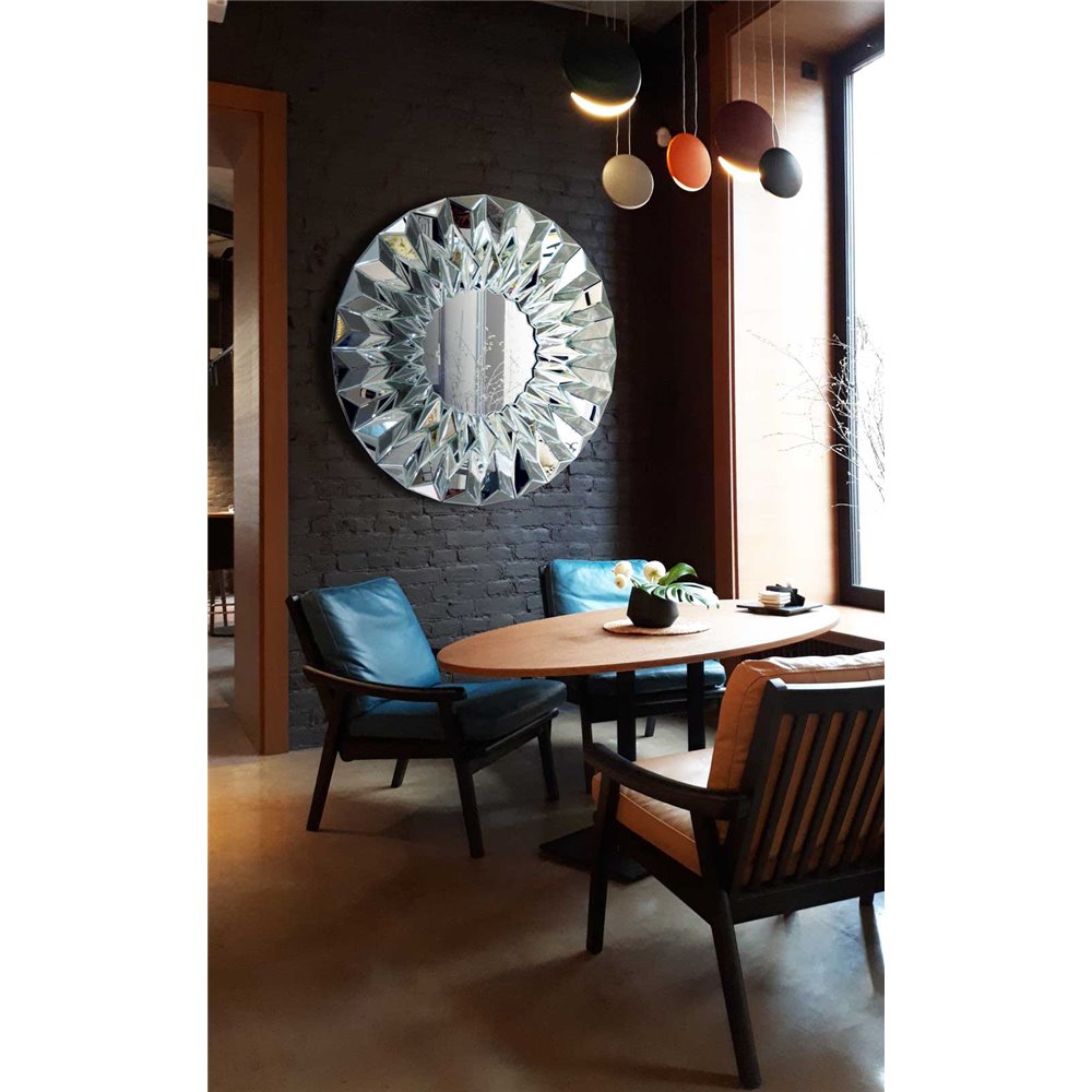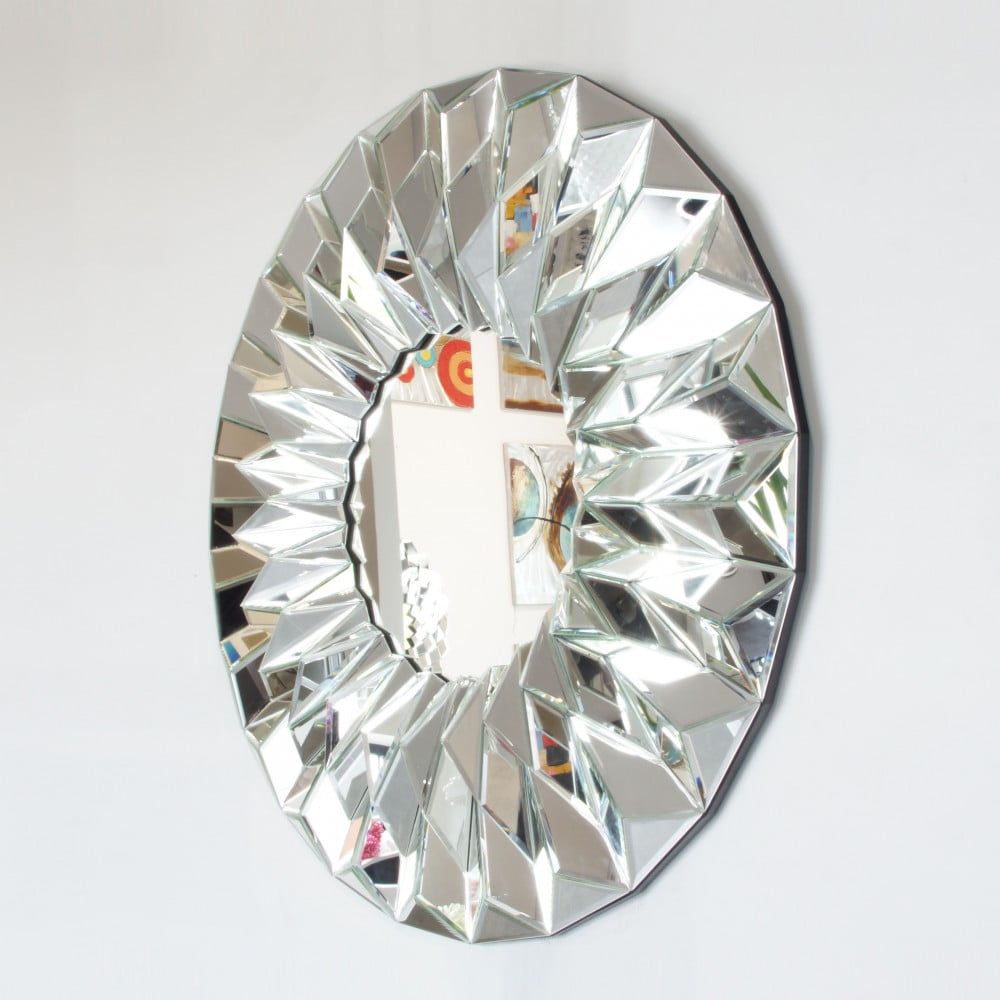 Lustro okrągłe wyjątkowe w trójwymiarowej nieregularnej lustrzanej ramie 100 cm Hecate