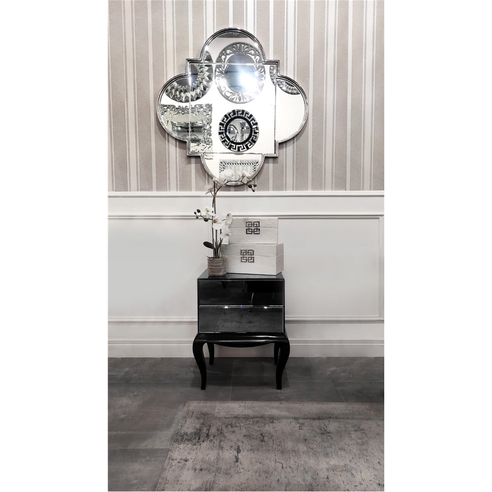 Lustro kwadratowe z ozdobnymi półokręgami otoczonymi srebrnymi wstawkami 100/100 cm Cento