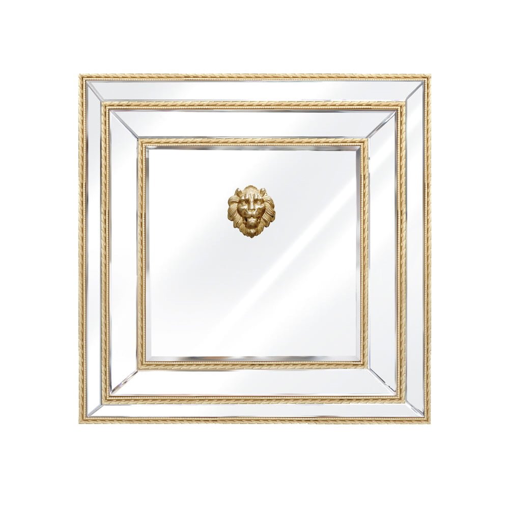 Zobacz większe Lustro reprezentacyjne złote w formie kwadratu z głową lwa 100/100 cm Sharon