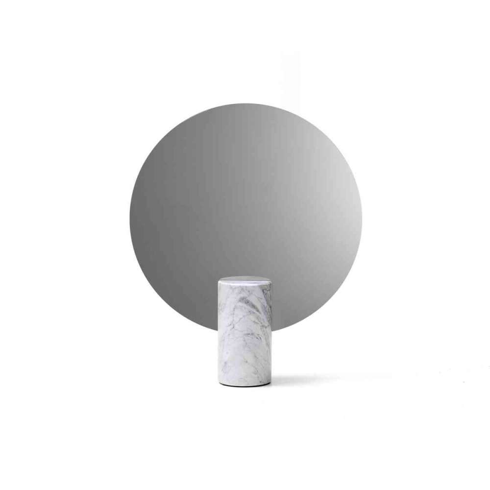 Specchio bifacciale (una faccia è bronzata, l'altra è noir), podstawa w marmo bianco Carrara o nero Marquina.