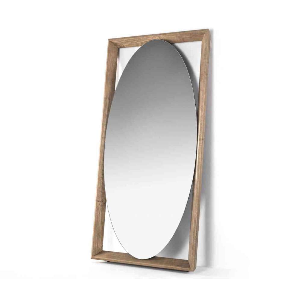 Lustro owalne z jesionową ramą do zawieszenia lub oparcia o ścianę. Jeśli lustro jest ustawione na podłodze, konieczne jest użycie dołączonej podstawy z regulowanymi nóżkami.