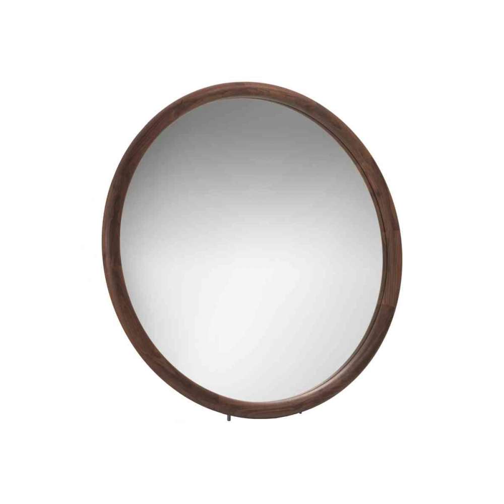 Okrągłe lustro ścienne do zawieszenia lub postawienia z ramą z litego orzecha canaletta. W celu przymocowania lustra do ściany konieczne jest zdjęcie wsporników.