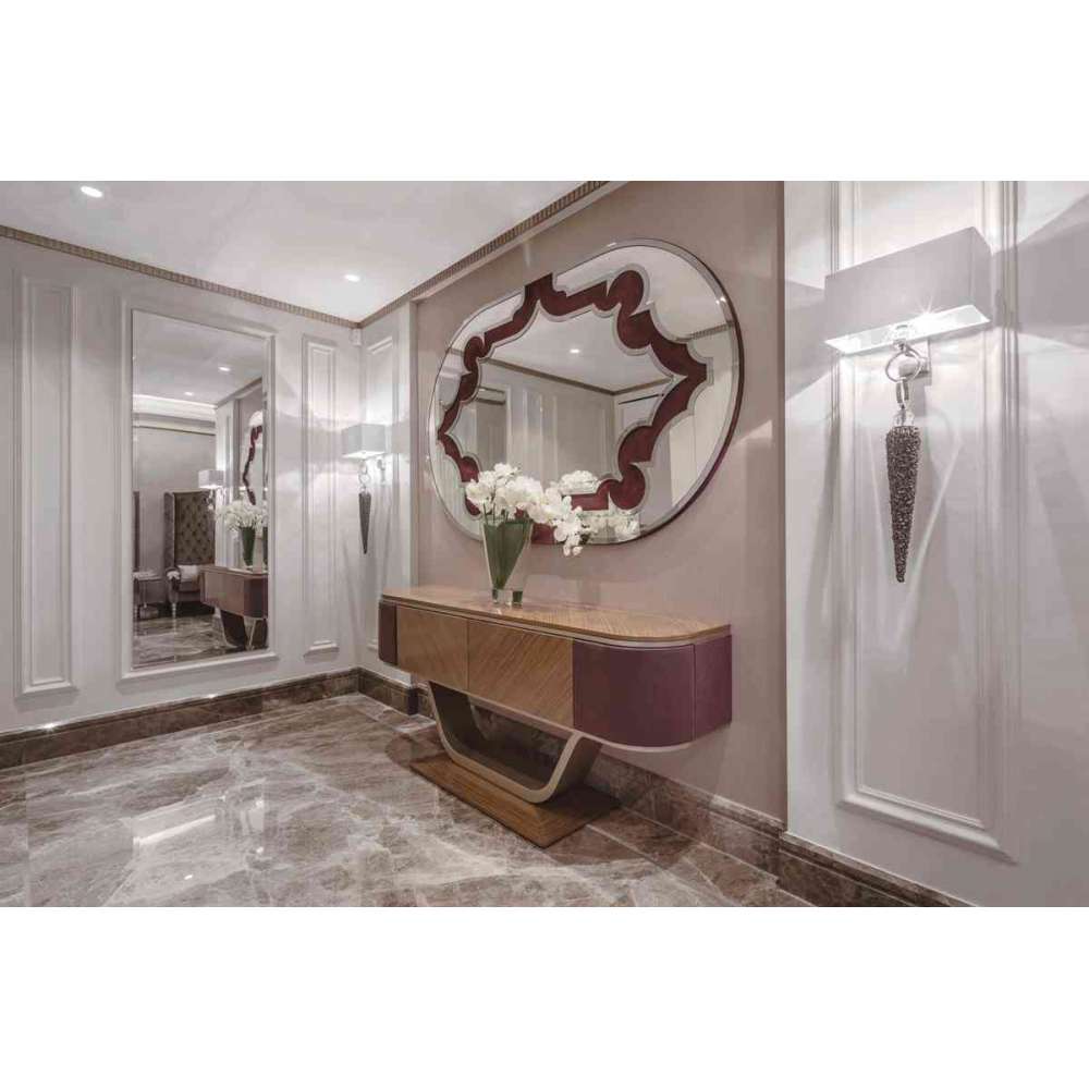 Szlifowana struktura metalowa w wykończeniach: jasne jasne złoto, szampańskie matowe złoto, jasny chrom, jasny czarny chrom, matowy satynowy brąz. Brzegi i dekoracja wewnętrzna obszyte skórą P.3 Kat. Zamsz.