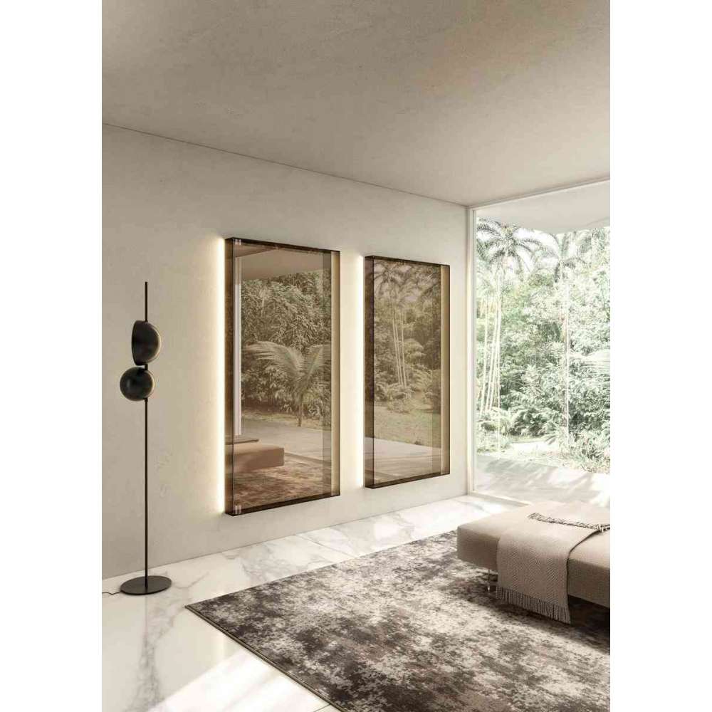 Przezroczysta szklana rama z krawędzią 45° i wbudowanym oświetleniem otaczają tę czysto odblaskową powierzchnię. Ten minimalistyczny design bawi się światłem i subtelnie oddaje harmonię wnętrz.