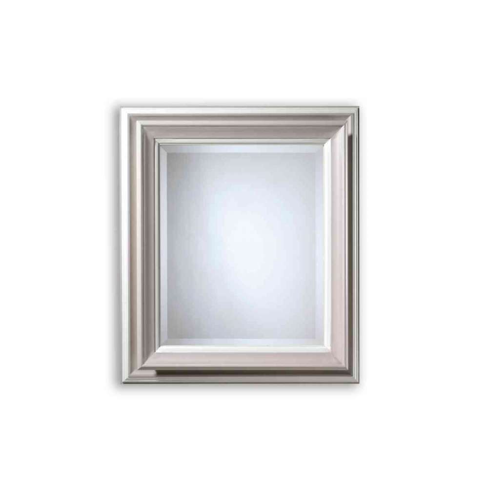 Podwójna reliefowa rama podkreśla elegancję i formalną trzeźwość tego prostokątnego lustra inspirowanego klasyką, wykonanego z ręcznie malowanego drewna sosnowego z białym wykończeniem.