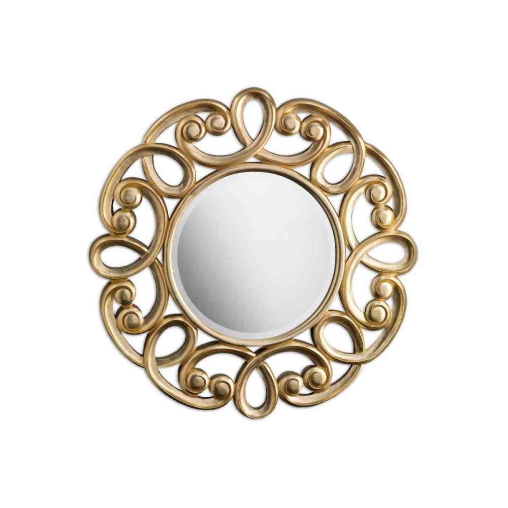 Neobarokowe lustro z ramą charakteryzującą się dużymi wolutami z drewna jelutong, ręcznie rzeźbione i pozłacane starożytną techniką złota.