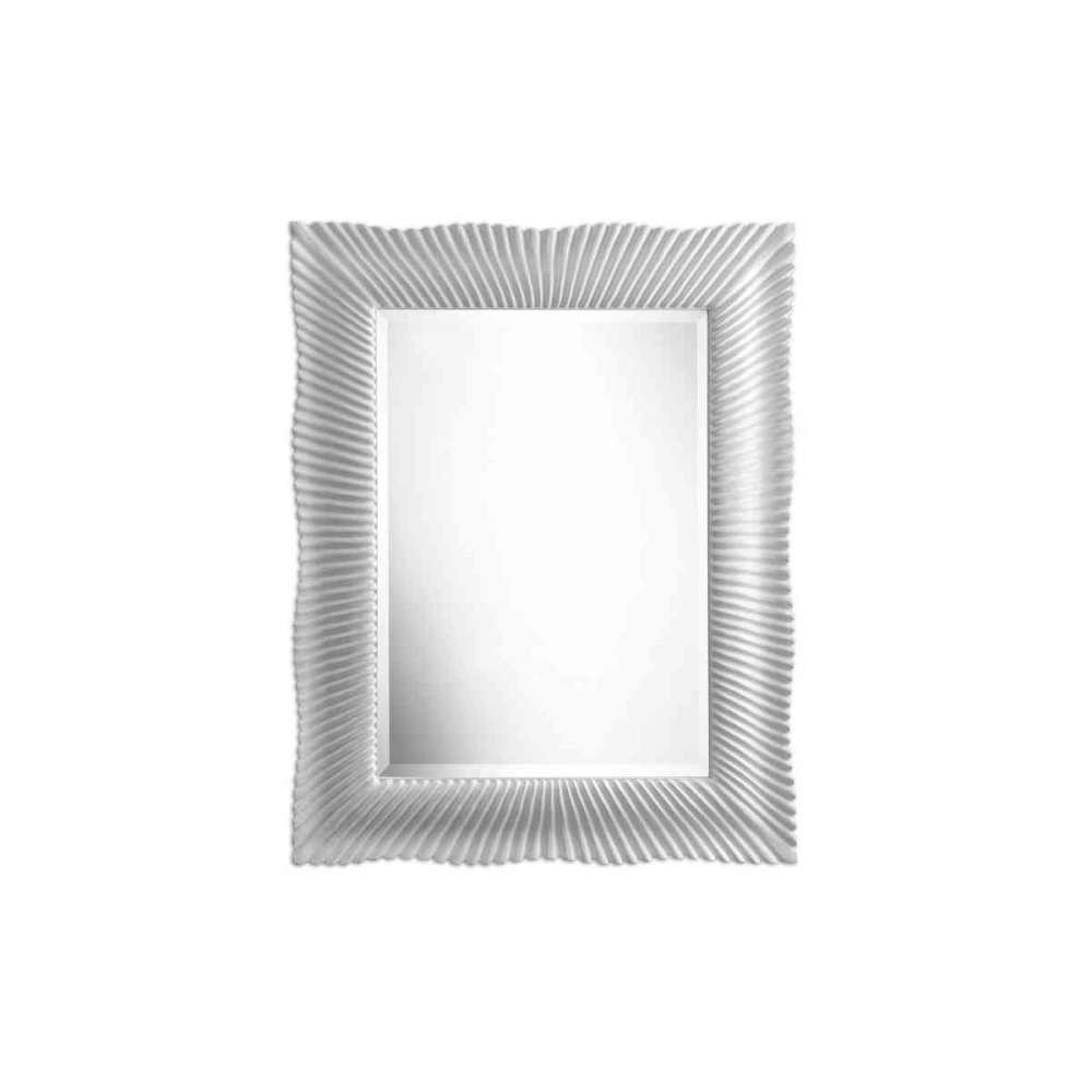 Ręczne wykończenie srebrnymi liśćmi sprawia, że prostokątne lustro jest wyjątkowe i otwarcie cenne, co stanowi reinterpretację dekoracji inspirowanych barokiem we współczesnym stylu. Ważna drewniana rama jelutong jest rzeźbiona i powlekana ręcznie z najbardziej wyrafinowanym kunsztem. Lekko zaokrąglone górne rogi i krawędzie o szlifie diamentowym sprawiają, że wyrafinowany styl tego mosiężnego lustra uchylnego jest wyjątkowy.