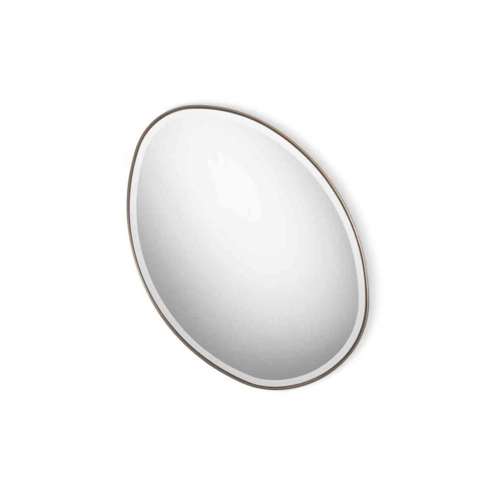 Kamienne nowoczesne lustro z żelazną ramą. Lustro jest z frezowanego szkła o nieregularnym kształcie i płaskiej żelaznej ramie. Falisty kształt tego lustra pozwala tworzyć różne kompozycje na ścianie salonu lub strefy wejściowej.