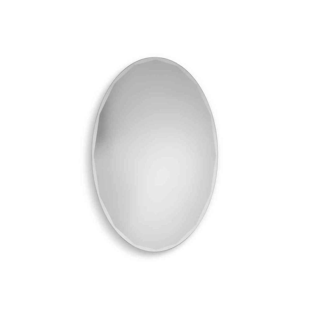 Nowoczesne owalne lustro Gemma. Srebrne lustro ma grubość 6 mm z podwójnym tłem i jest frezowane i obrabiane precyzyjnym cięciem diamentowym