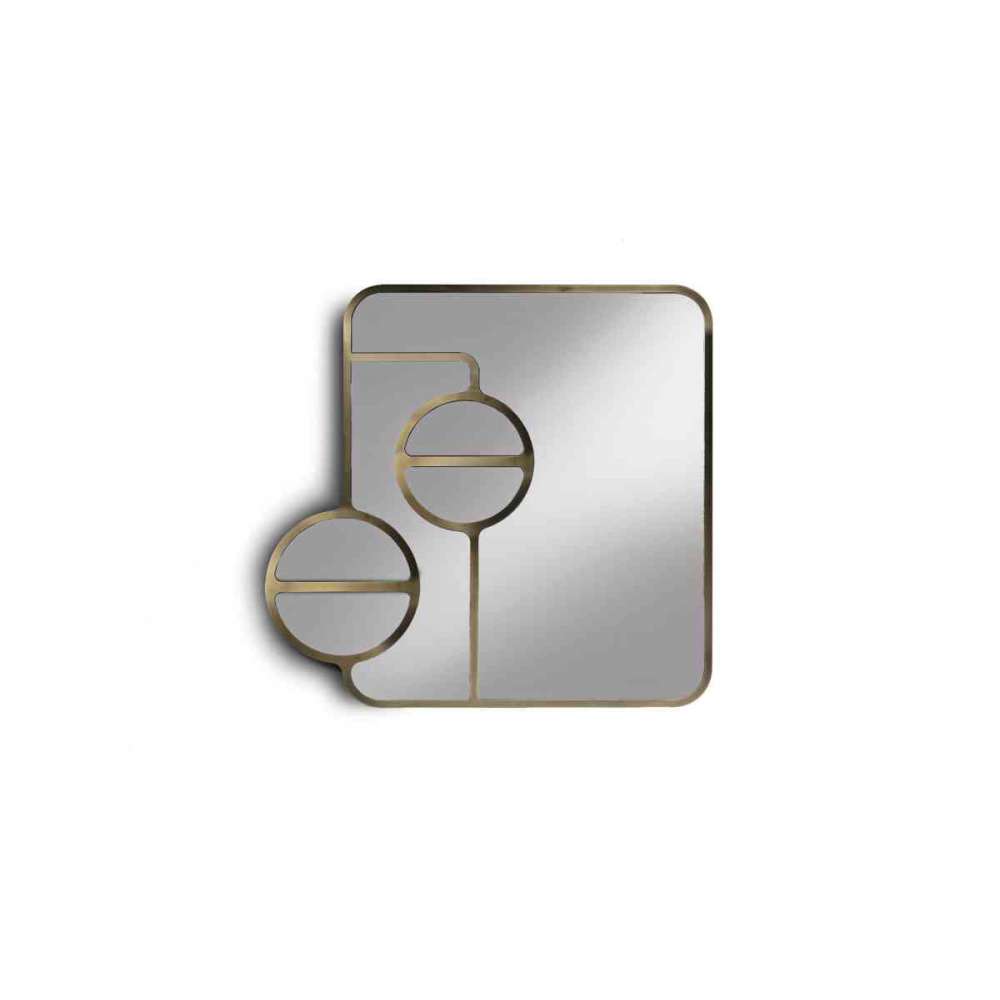 Struktura i rama z wycinanej laserowo konstrukcji ze stali nierdzewnej i wykończenie ramy w kolorze ciemnego brązu. Lustrzane okulary srebrne, srebrnobrązowe, srebrnoszare wykończenie. Szlifowane Filo Lucido, formowane i zabezpieczone 4mm, lustro. Pionowe wsporniki do montażu na ścianie.