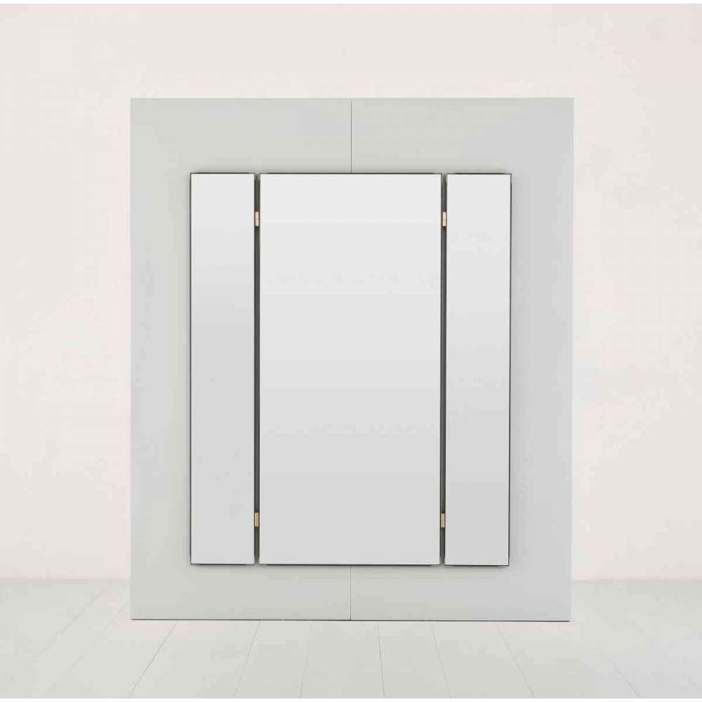 Lustro ścienne z dwoma obrotowymi skrzydłami. Rama z czystej stali z lakierem antykorozyjnym, tył uszlachetniony.