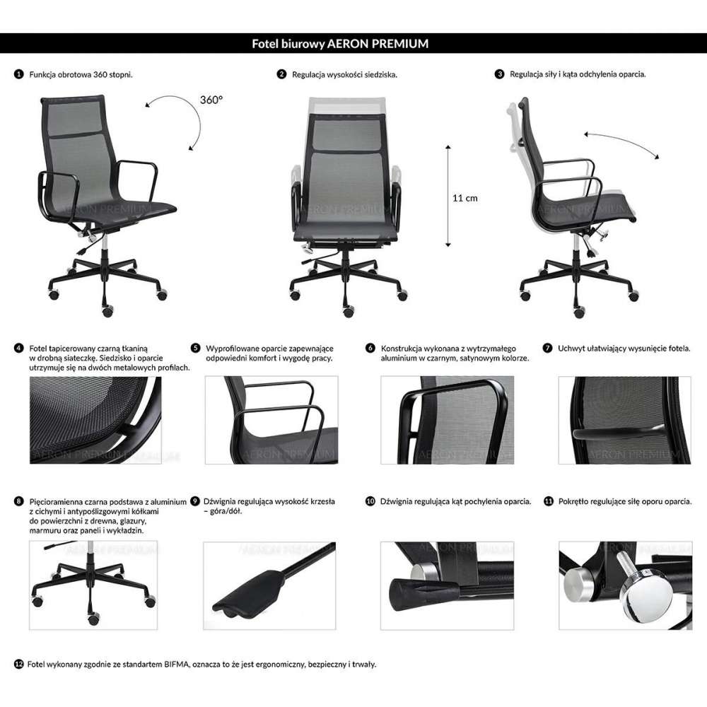 Fotel biurowy Aeron Premium czarny - Siatka | aluminium