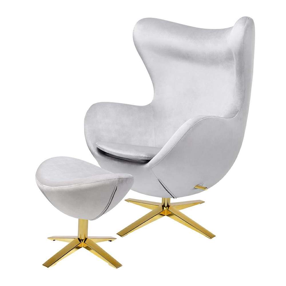 Podstawa Fotel Egg szeroki Velvet Gold z podnóżkiem jasny szary 37 - welur | złota najlepsza cena, najwyższa jakość, bezpieczna płatność.