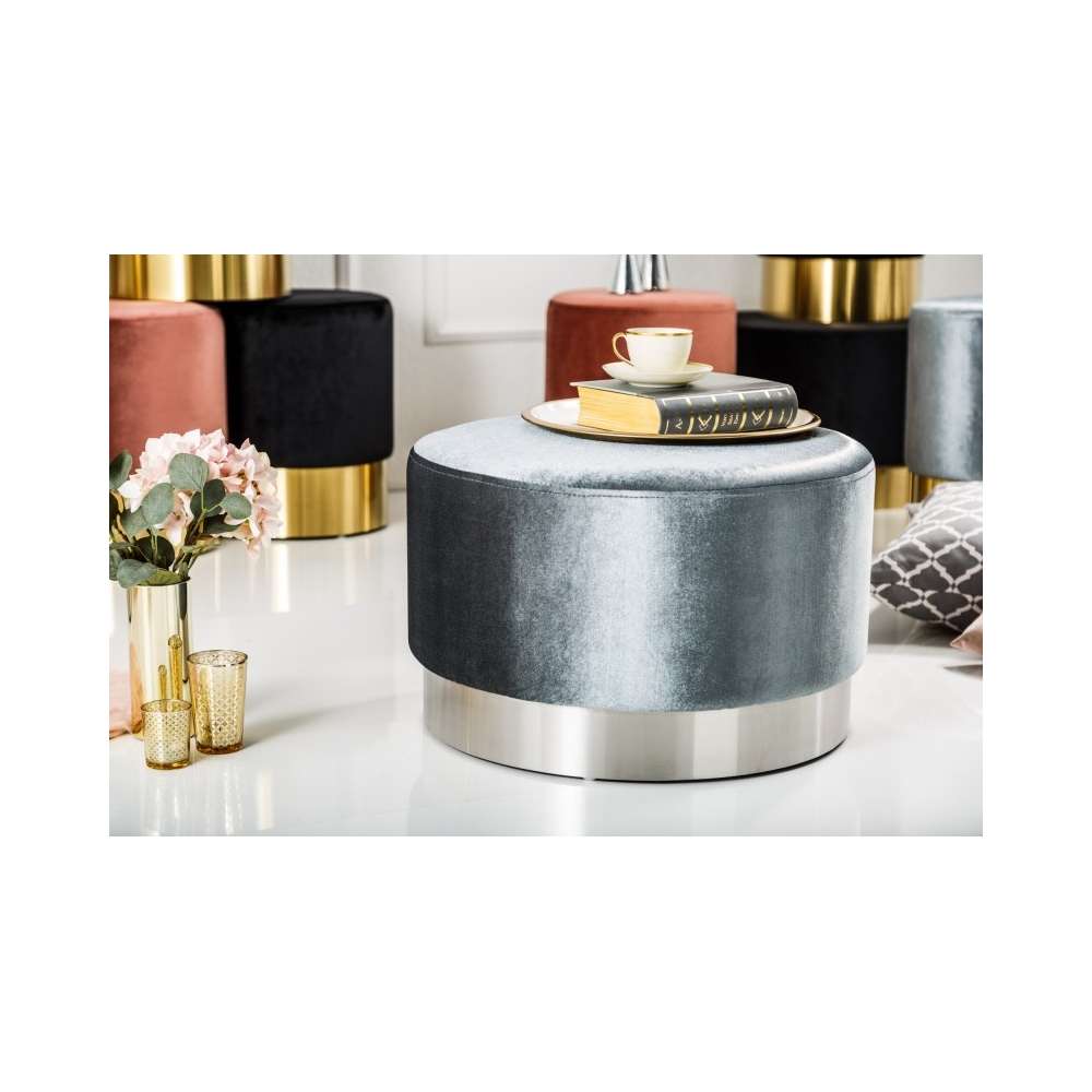 Pufa Invicta Barock Velvet Wide - srebrna | srebrna podstawa najlepsza cena, najwyższa jakość, bezpieczna płatność, fachowe doradztwo.