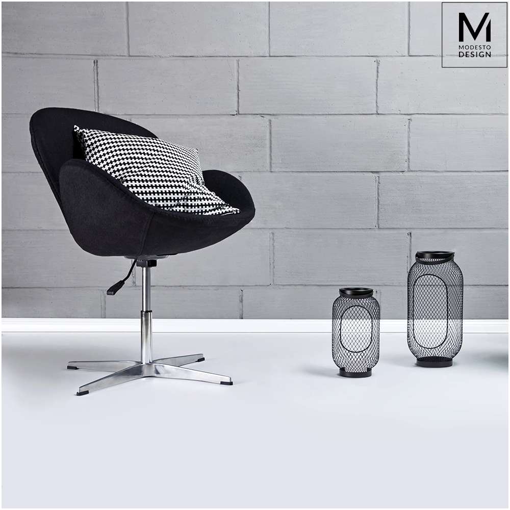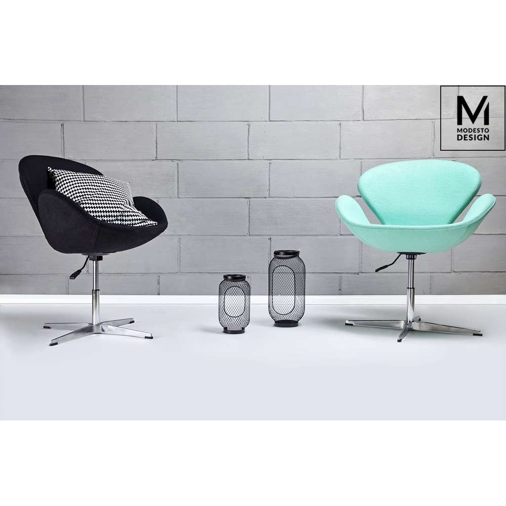SWAN krzesło marka MODESTO DESIGN. Oparcie i siedzisko tapicerowane w kaszmir czerni. Podstawa chromowana z regulacją wysokości. Wbudowany obrotowe 360 stopni. Fotel będzie idealny na biurku lub stole. Maksymalna liczba elementów. Pojemnik: Transport Metoda 2: Wymiary paczka: 74 cm x 74 cm x 53 cm Nacisk aksymlane: 110 kg. Iloczyn samodzielnego montażu: Tak