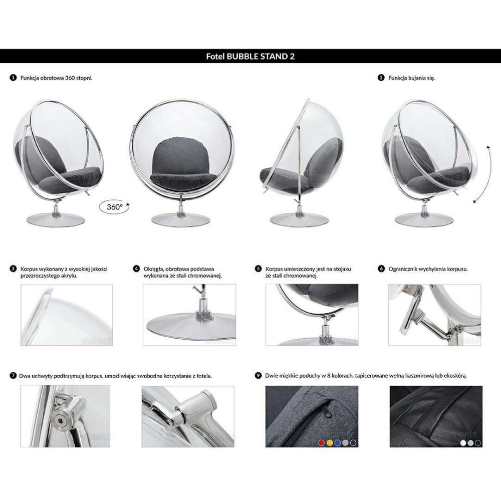 Projektant fotel Bubble Stojak 2 zapewni relaks i komfort. Ciało fotela wykonana jest z wysokiej jakości przezroczystego akrylu. Umieszczony wewnątrz dwie miękkie poduszki, tapicerowane wełna kaszmir. Ciało jest umieszczone na stelażu ze stali chromowanej. Dwa uchwyty wsparcia organizmu umożliwiając jednocześnie swobodny i bezpieczne korzystanie z krzesła. Całość stoi na okrągłej podstawy wykonana z chromowanej stali. Dzięki zastosowaniu takich materiałów, fotelik wygląda elegancki i nowoczesny. Bubble przyciąga uwagę swoim wyglądem i formą. Jeśli szukasz unikalnych rozwiązań, takich jak nowoczesne formy, Bubble jest dla Ciebie! Będzie to z pewnością będzie doskonałym dodatkiem do wnętrza, podkreślając styl i charakter domu. Bubble krzesła z kolekcji są dostępne w wielu wzorach i kolorach. Korpus: akrylStojak i podłoże stalowe chromowanaUdźwig do 120 kg masy netto 1 p .: 36 kg opakowaniu waga 40 kg jednostek Max. Pojemnik: Dostawa Metoda 1: Paleta
